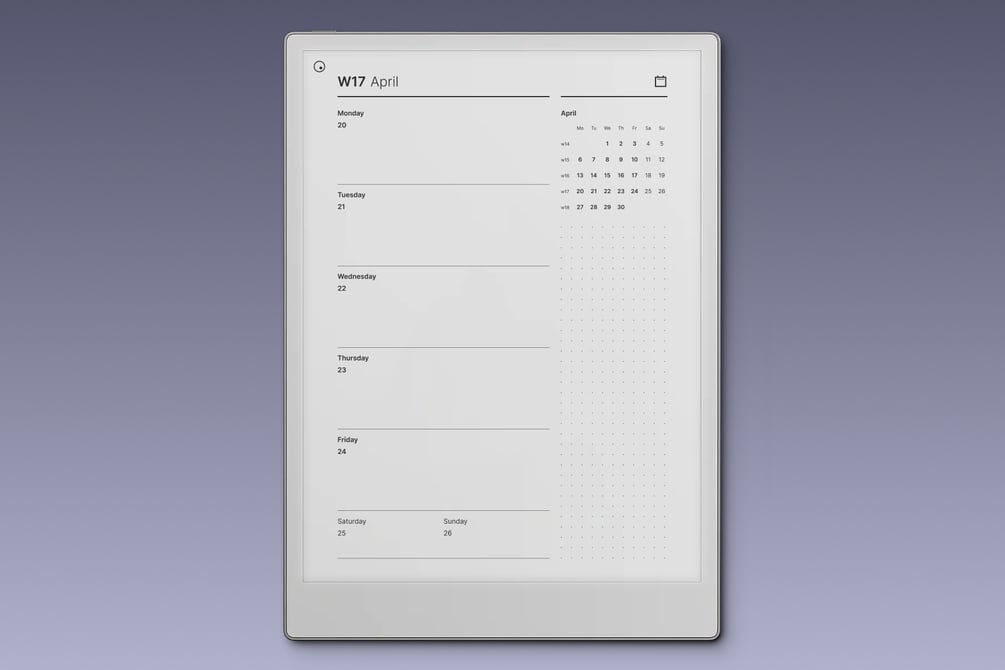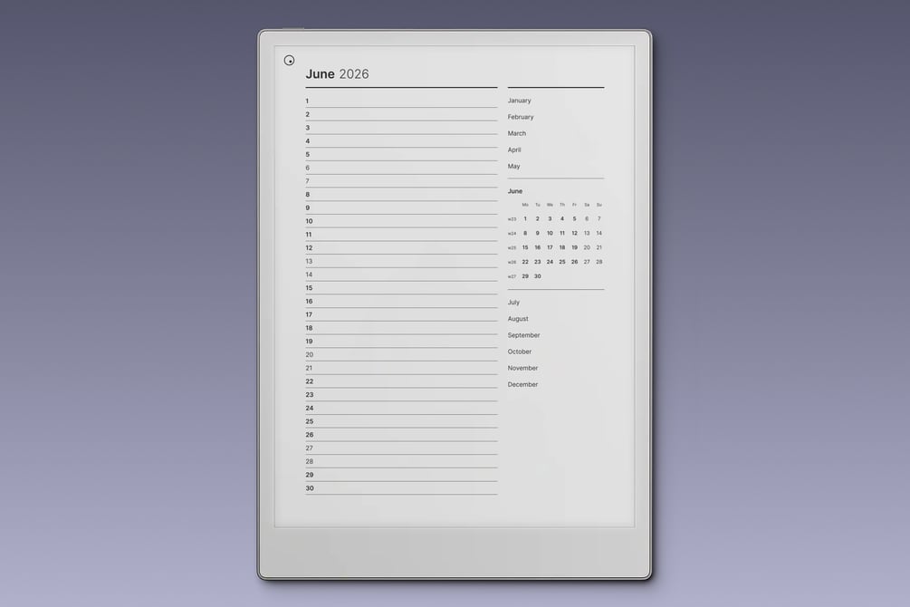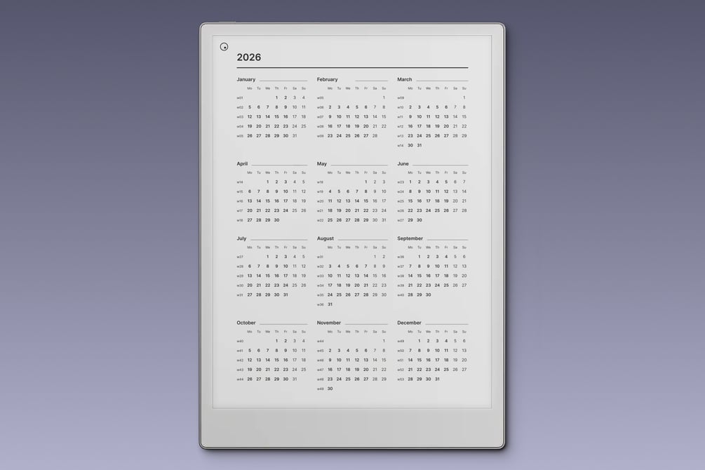 reMarkable Calendar 2026 (Monthly + Weekly)